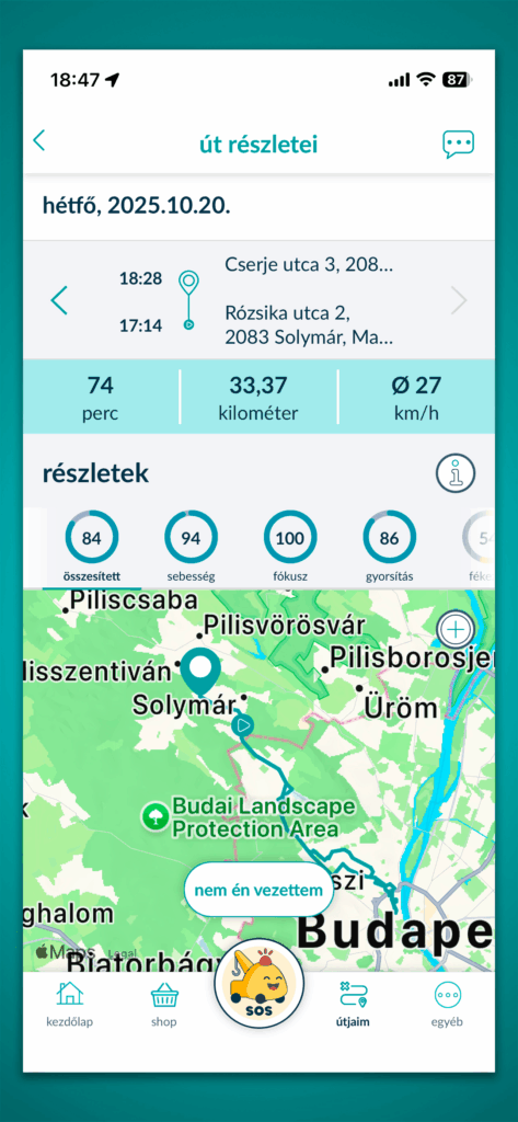 - Routes and location history are not visible to UNION Biztosító; only aggregate scoring data is used